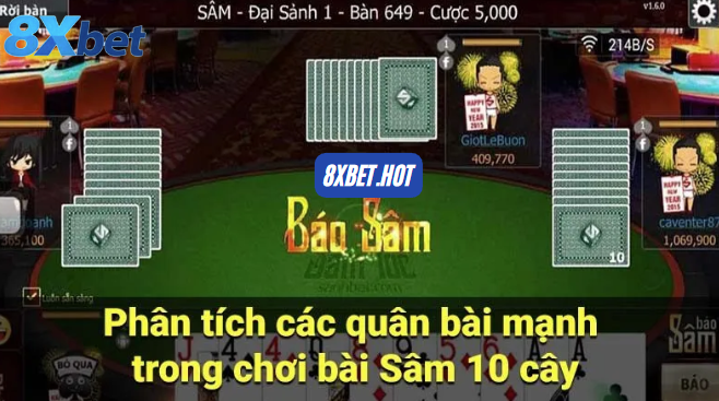 Trong số các trò chơi đánh bài phổ biến tại Việt Nam, bài Sâm 10 cây 8xbet (hay còn gọi là Sâm Lốc 10 lá) luôn được cộng đồng game thủ yêu thích bởi tính chiến thuật cao và cách chơi kịch tính. Đây là trò chơi truyền thống đã có từ lâu đời, nay được tích hợp trực tuyến 8xbet với giao diện hiện đại, âm thanh sống động và luật chơi rõ ràng.